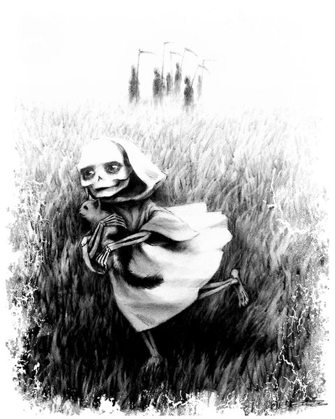 Greetings to all friends! I present to you the first work from the series "White, Visiting the Greats" 850mm by 600mm There is an opinion that artists after death, go away and continue to exist in the worlds that they invented and presented to the world throughout their creative life. Grandfather and White decided to visit each of these worlds. The first such" house", on whose threshold Belaya (White) and her grandfather set foot, will be the world of Zdislaw Beksinski @beksinski Beksinski is the greatest Polish artist who gave humanity his dark, intricate, frightening and at the same time alluring world.